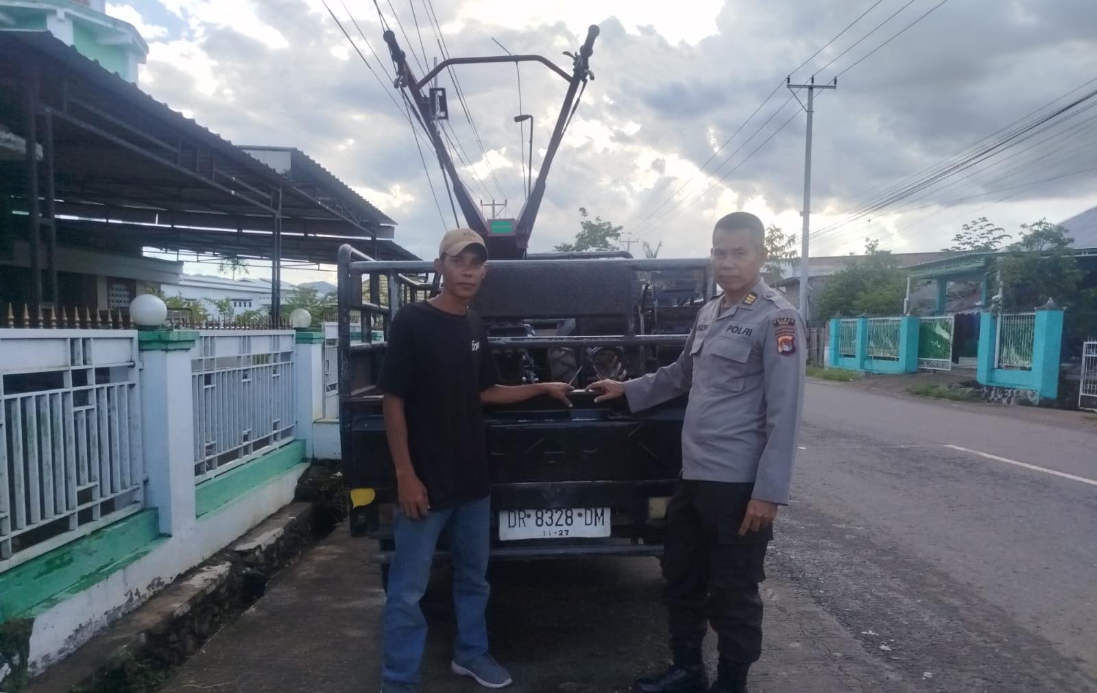 Terkini Kabag SDM Polres Bima Kabupaten Polda NTB melaksanakan AKP Rusdin mendampingi petugas dinas pertanian kabupaten Bima Bapak Nurul Haq ST yang menyerah alat pertanian satu unit Hantraktor yang diperuntukkan bagi kelompok tani Mbanggu i so Tolobou di Desa Dena Kecamatan Madapangga Kabupaten Bima.