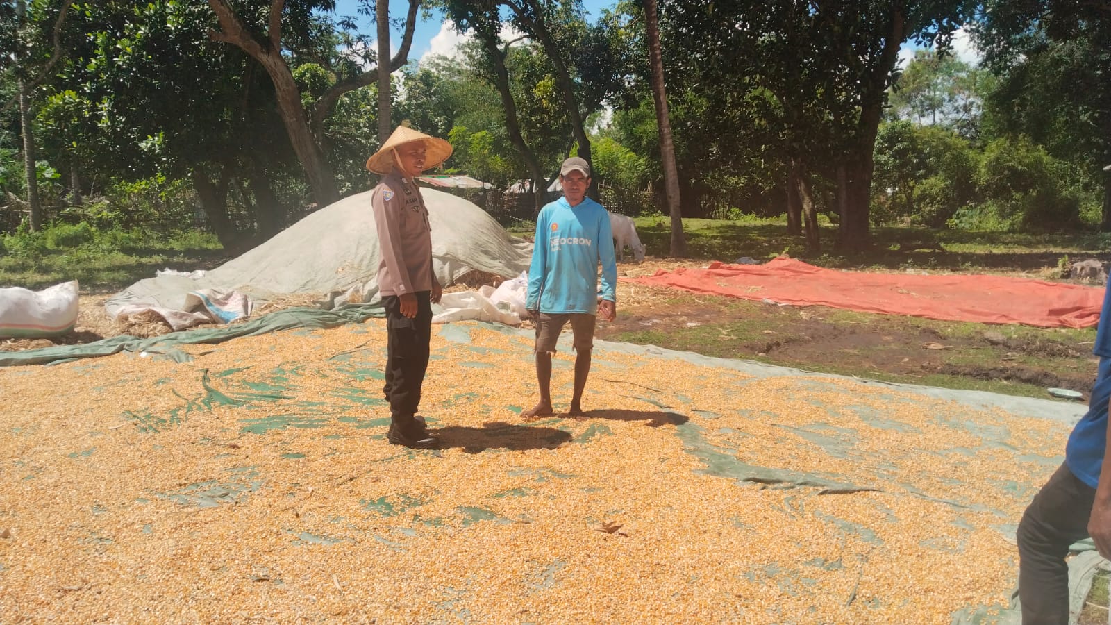 Pemantauan dilakukan oleh Bhabinkamtibmas Desa Mumbu, Brigadir Akbar, terhadap aktivitas petani yang sedang menjemur hasil panen jagung milik Bapak Mahmud (45), dengan luas lahan sekitar 1 hektar. Jagung yang dipanen merupakan varietas hibrida merk ADV JAGO dengan usia tanam 120 hari dan telah memasuki masa panen pada Maret 2026, dengan estimasi hasil mencapai ±7 ton jagung pipilan kering (JPK).
