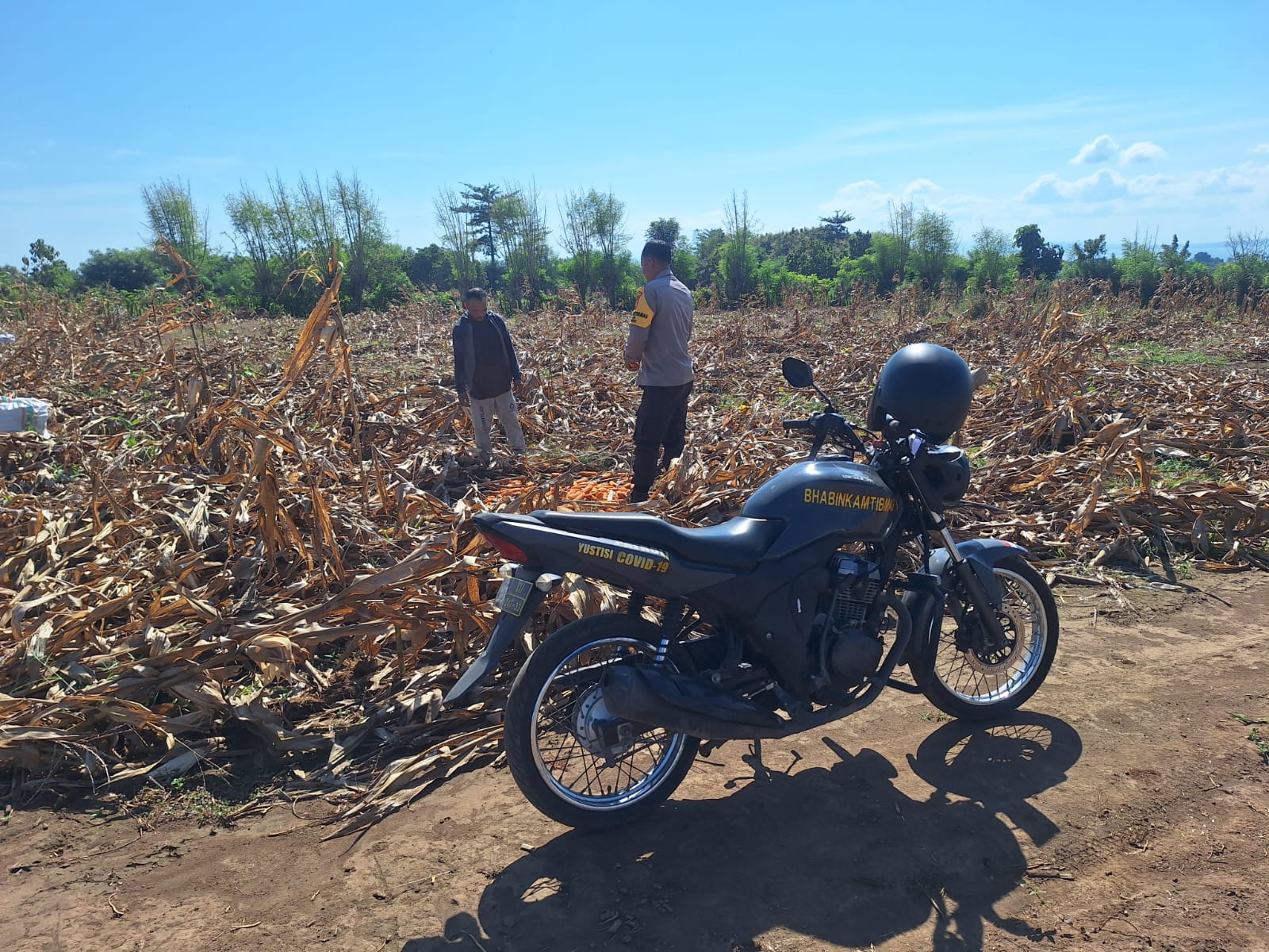 Di atas lahan seluas 12.000 M² tersebut, Brigadir I Komang Widnyana terlihat aktif membantu proses pemetikan jagung hibrida milik warga. Sembari bekerja, ia memberikan motivasi kepada Sdr. Arifin agar terus mengoptimalkan pengelolaan lahannya sehingga hasil panen kali ini dapat mencapai target yang telah ditentukan.