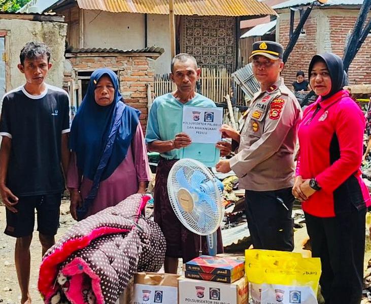 Polsubsektor Palibelo Polres Bima Kabupaten Polda NTB mengambil langkah cepat meringankan beban masyarakat terdampak kebakaran di Desa Roi Kecamatan Palibelo Kabupaten Bima.