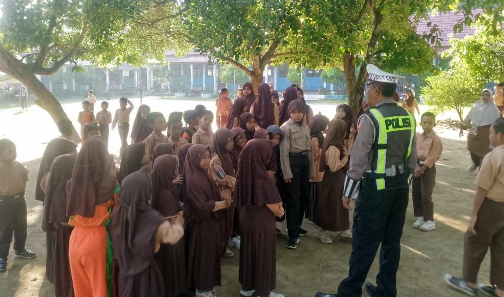 Satlantas Polres Bima Kabupaten Polda NTB terus menggencarkan sosialisasi keselamatan berkendara Kali ini, edukasi tertib berlalu lintas diberikan kepada murid SDN 01 Panda Kecamatan Palibelo Kabupaten Bima.