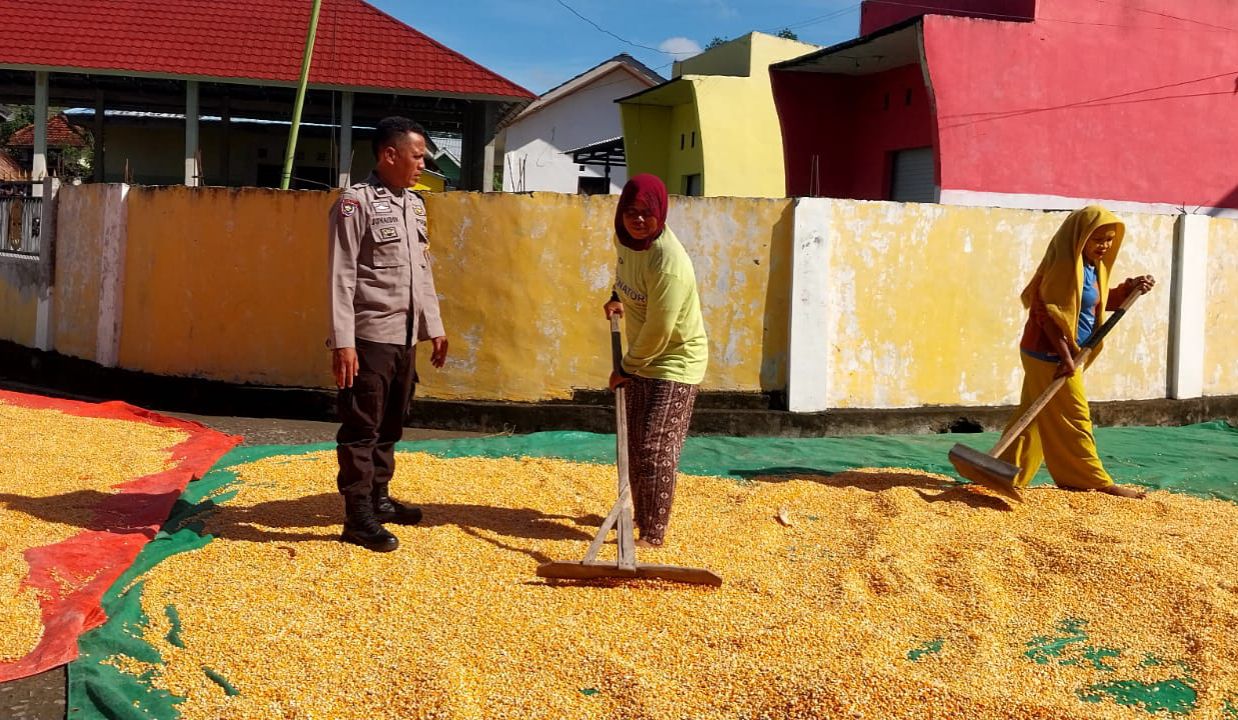 Dalam rangka mendukung program ketahanan pangan nasional serta menjaga situasi kamtibmas yang aman dan kondusif, Bhabinkamtibmas Desa Manggenae, Aipda Junaidin, melaksanakan kegiatan sambang dan tatap muka dengan warga binaan yang sedang menjemur hasil panen di Dusun Sorikuta, Desa Manggenae, Kecamatan Dompu, Kabupaten Dompu, pada Sabtu (11/04/2026) pukul 09.30 WITA.