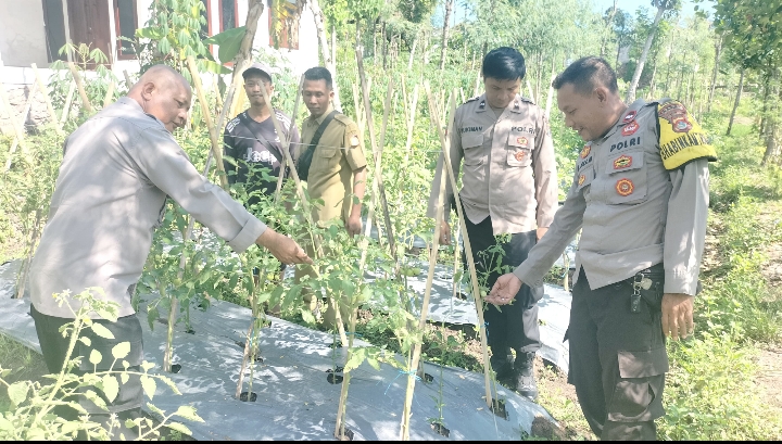 Lombok Timur — Kapolsek Sakra IPTU I Nyoman Astika, SH., bersama jajaran personel Polsek Sakra melaksanakan kegiatan monitoring ketahanan pangan di wilayah Desa Sakra, Kecamatan Sakra, Kabupaten Lombok Timur, pada Senin (13/4/2026).