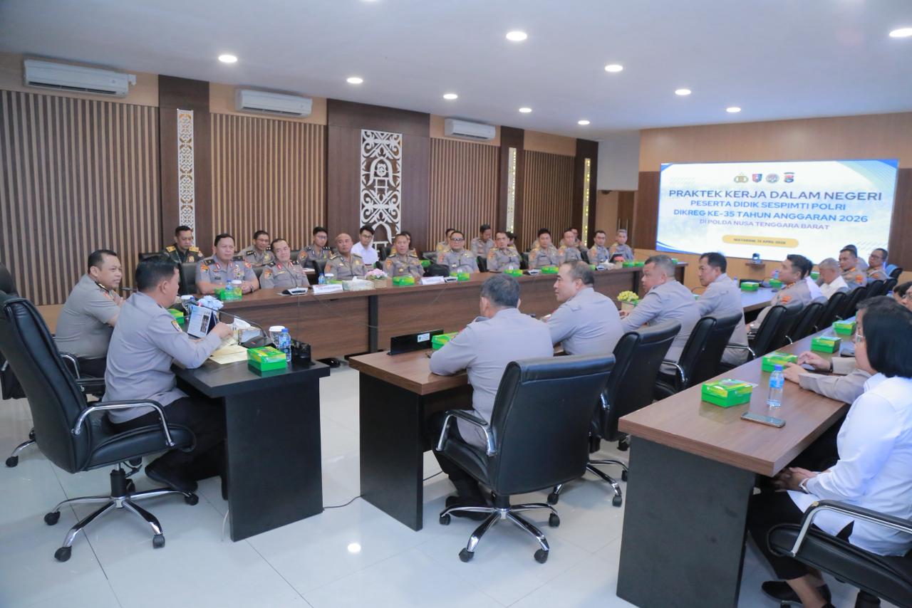 Kegiatan tersebut turut dihadiri oleh jajaran Pejabat Utama Polda NTB, tim pembimbing, serta seluruh peserta didik Sispemti Dikreg ke-35 yang akan menjalani praktik lapangan.