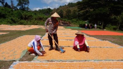 Polisi Dekat dengan Rakyat, Bhabinkamtibmas Nungga Dampingi Panen Jagung